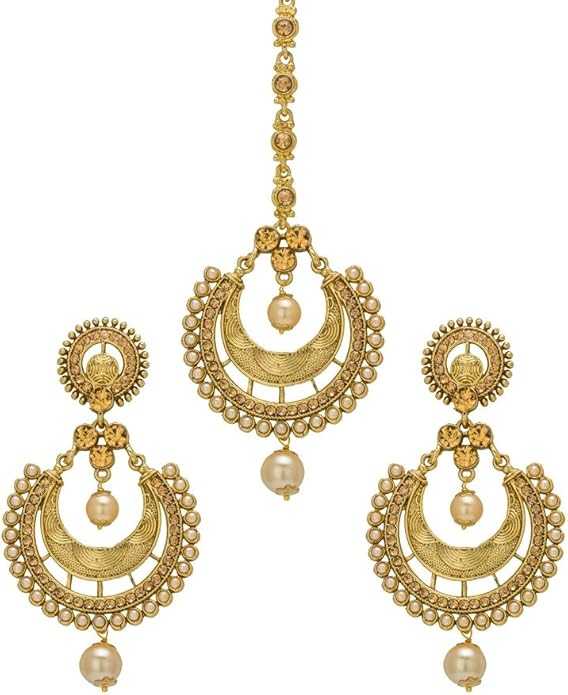 Be the first to review “Bollywood Fashion Faux Pearl Drop Forehead Maang Tikka With Indian Earrings For Women”