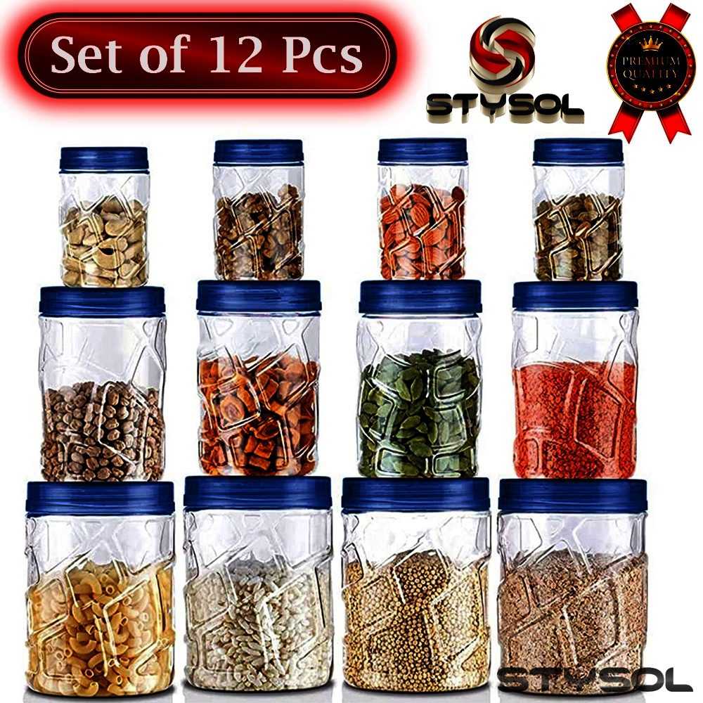 Stysol 18 Pieces Plastic Storage Jars | Kitchen Organiser | Jar, Container | Air Tight, BPA Free | Blue