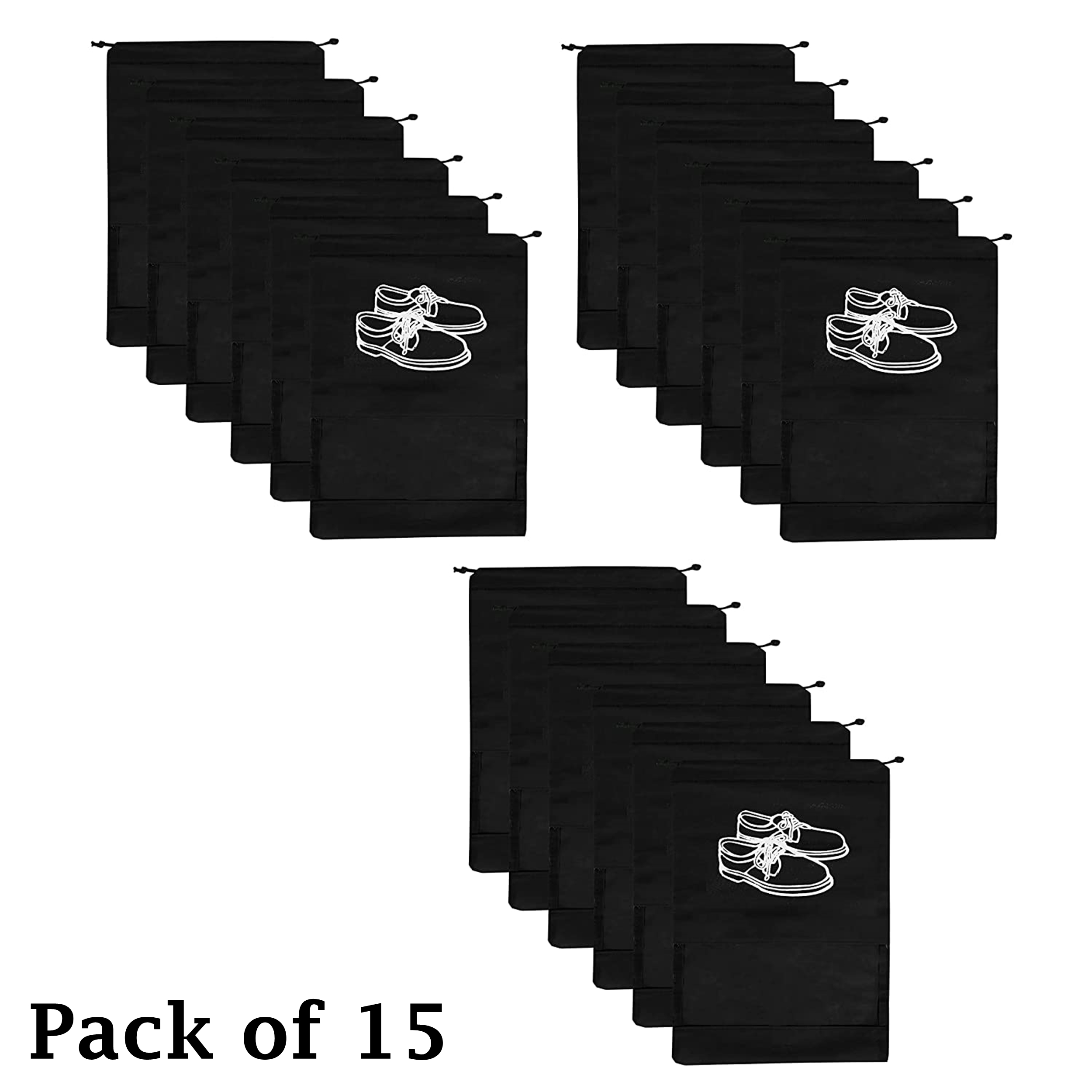 Stysol (Pack of 15) Non Woven Travel Shoe Cover || String Bag Organizer and Shoe Storage Bag || Travel Shoes Bag || Black
