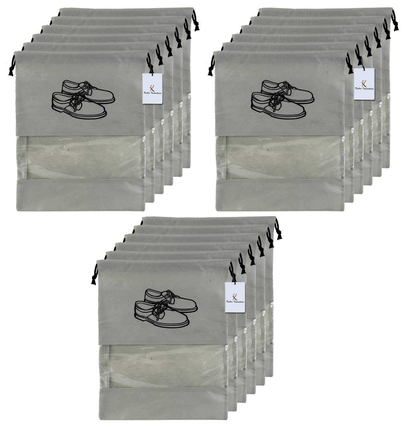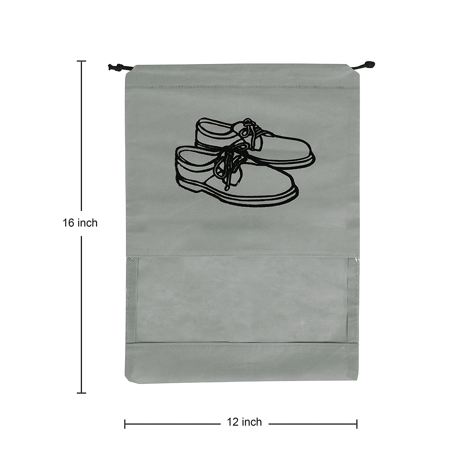 Stysol Pack of 18 pcs Travelling Shoe Storage Bag / Footwear Organiser Pouch / Portable Shoes Storage Bag Shoe Cover / String Bag Organizer | Shoe Print & Non-Woven Material| Transparent Window | Size 43 x 30 Cm