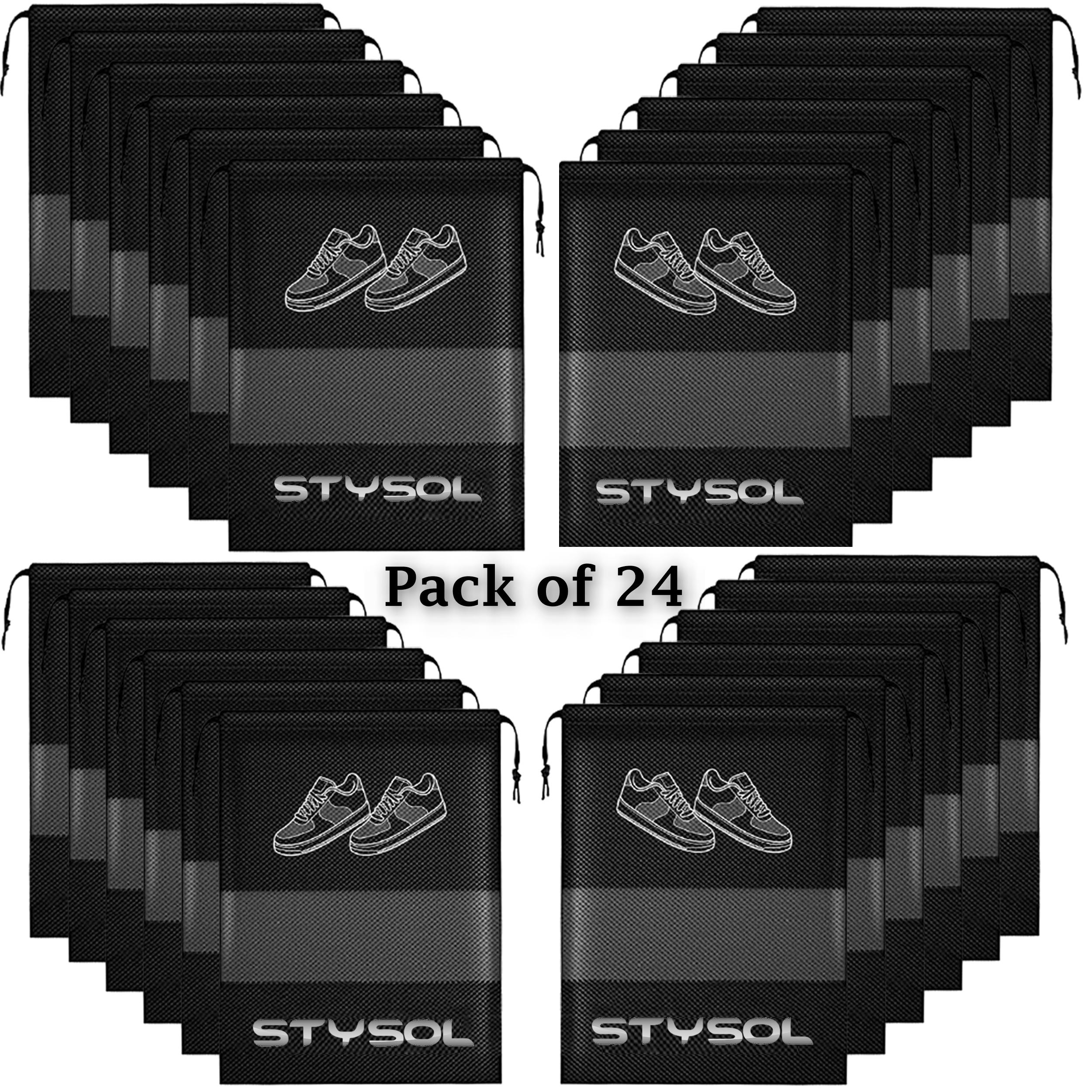 Stysol Pack of 24 PCs Shoe Potli Cover Travel Shoe Bag Non Woven Shoe Storage Covers Portable Shoe Pouches for Travelling and Footwear